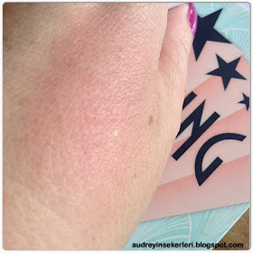 En son tamamen emilmiş ve dağıtılmış olarak böyle oluyor. Hafifçe ıslak ama çok da parlak olmayan bir görüntü oluyor yanakta. ister tek başına ister kullandığınız allığın altına hafif ıslak bir görüntü katmak için kullanabilirsiniz.